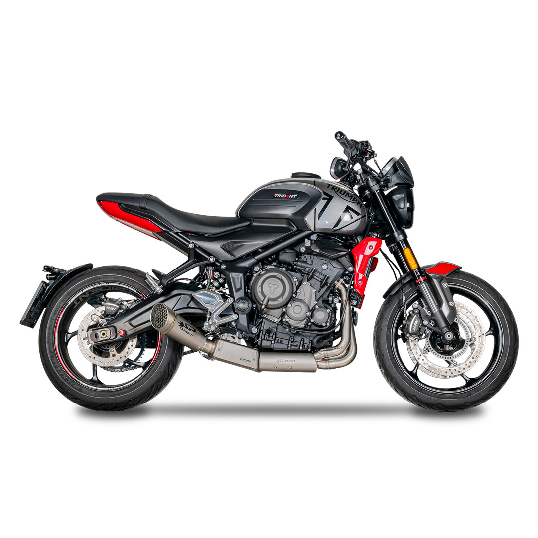 Scarico full Spark Grid-O per Triumph Trident 660 sviluppato dal reparto R&D Spark Exhaust Technology per offrire una combinazione perfetta tra performance, leggerezza e design racing mantenendo l’omologazione stradale.